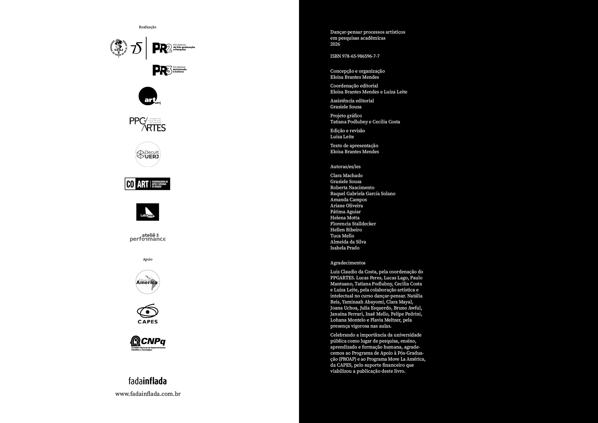 Ficha técnica: Concepção e organização: Eloisa Brantes Mendes / Coordenação editorial: Eloisa Brantes Mendes e Luiza Leite / Assistência editorial: Grasiele Sousa / Projeto gráfico: Tatiana Podlubny e Cecilia Costa / Edição e revisão: Luiza Leite / Texto de apresentação: Eloisa Brantes Mendes